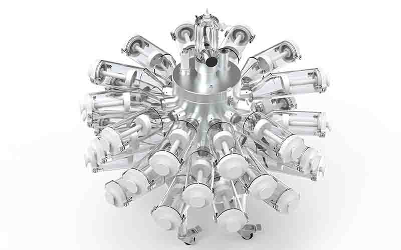 我们对经典的口鼻吸入暴露塔进行了优化设计,可为每个动物提供高重复性气溶胶,气溶胶进入暴露塔内层腔,通过径向横式排列连接气管把气溶胶通到外层动物口鼻处, 动物吸入新鲜气溶胶的同时呼出废气排入外层塔,如此动物吸入单向经口鼻处的气溶胶进行暴露。独特的三腔式结构,提高实验重复性,每层间差异性<10%,单层暴露塔为12个鼠位,最高可提供108个端口。塔身采用耐腐蚀不锈钢或高级航空铝合金制造,适用各种常用气溶胶口鼻吸入暴露。